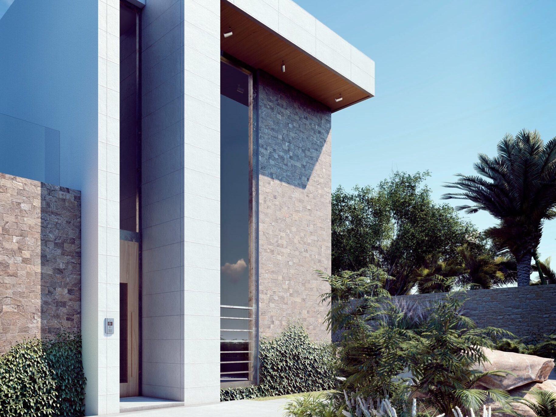 Render para casa residencial fachada derecha casa Tikal (Imagen: Render Soy Arquitectura)