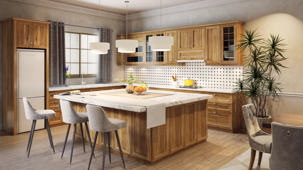 • Cocina con isla central y almacenamiento amplio.