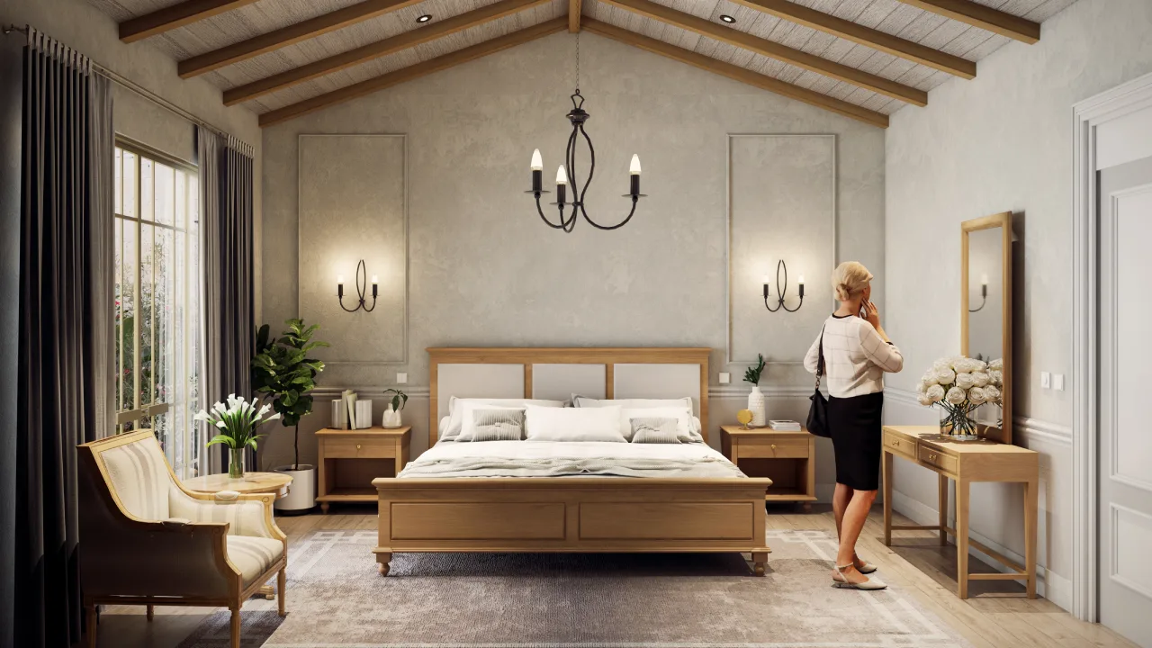 El dise帽o interior de la casa combina materiales naturales con una est茅tica contempor谩nea. Los espacios est谩n pensados para transmitir confort y amplitud, utilizando tonos neutros, iluminaci贸n c谩lida y elementos decorativos que enriquecen la experiencia espacial.